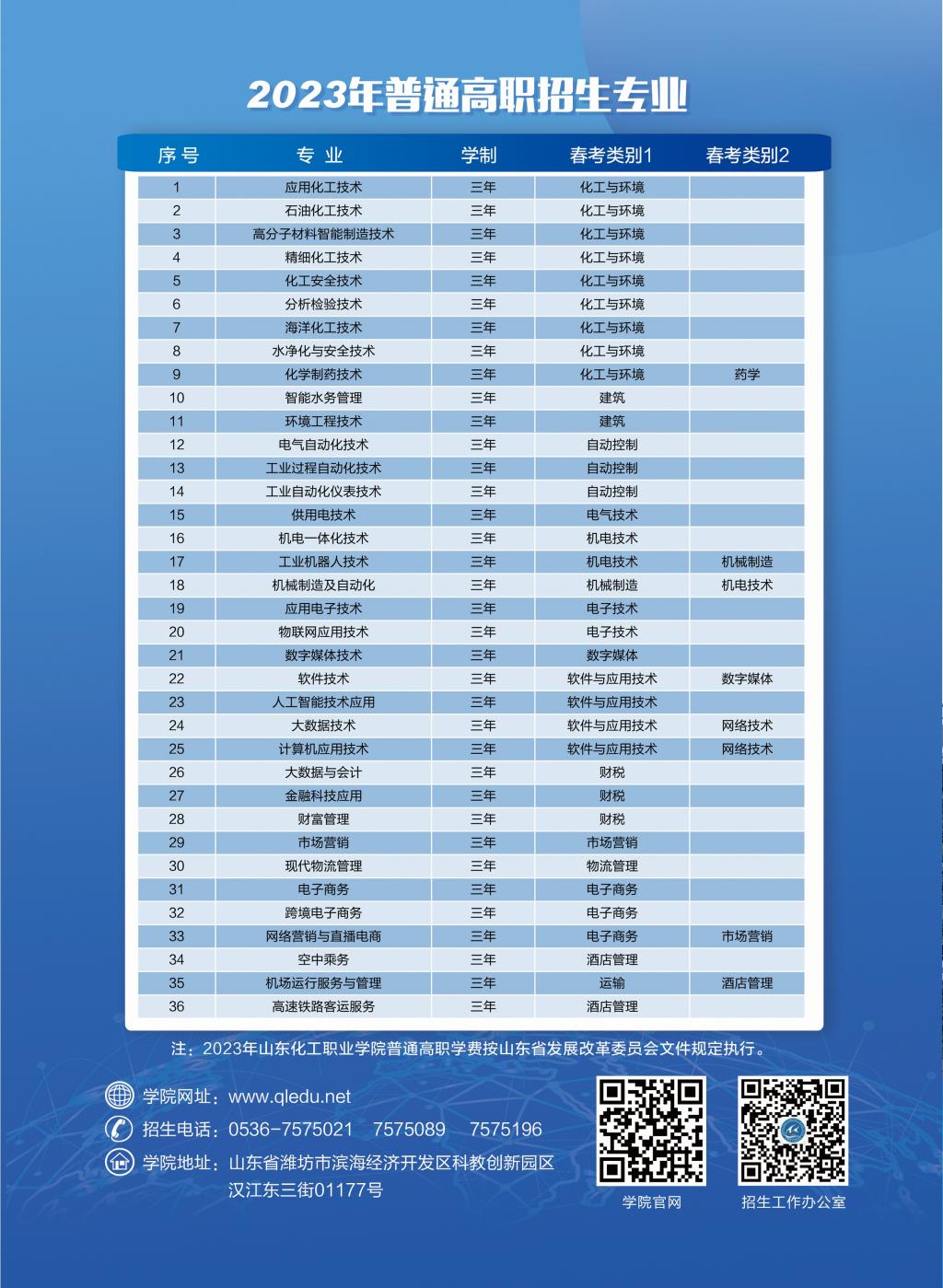 山东化工职业学院2023年招生简章单页版