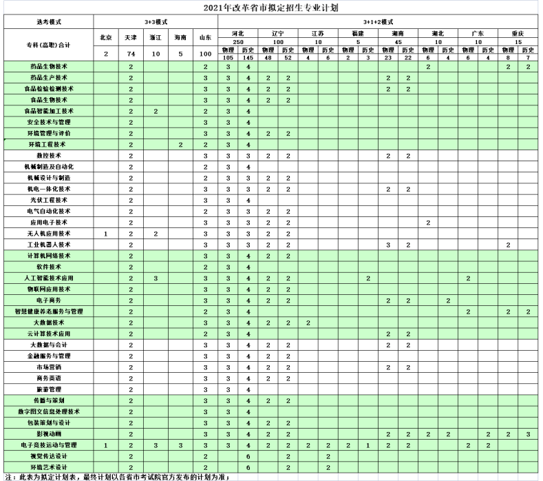 2021年高考改革省市拟定招生专业计划