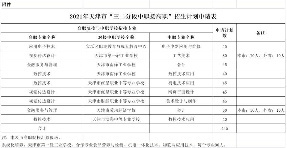 2021年天津市“三二分段中职接高职”招生计划表