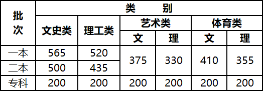 2021年高考录取最低控制分数线