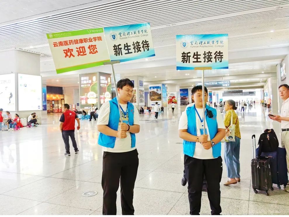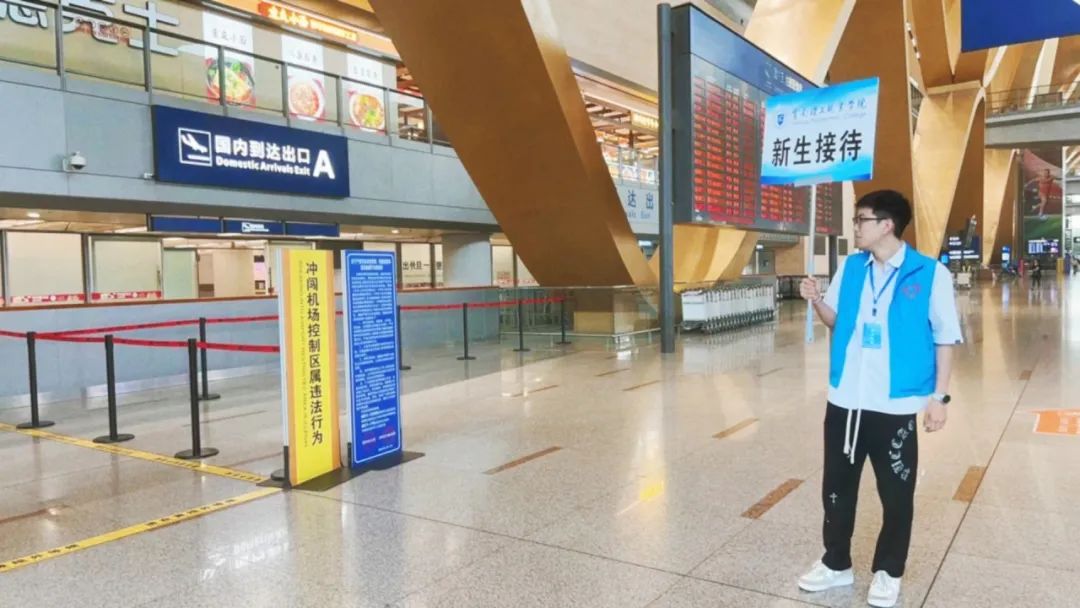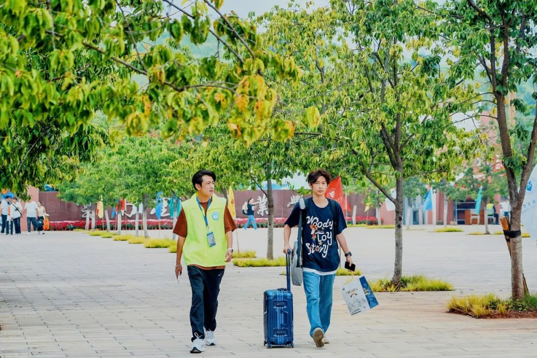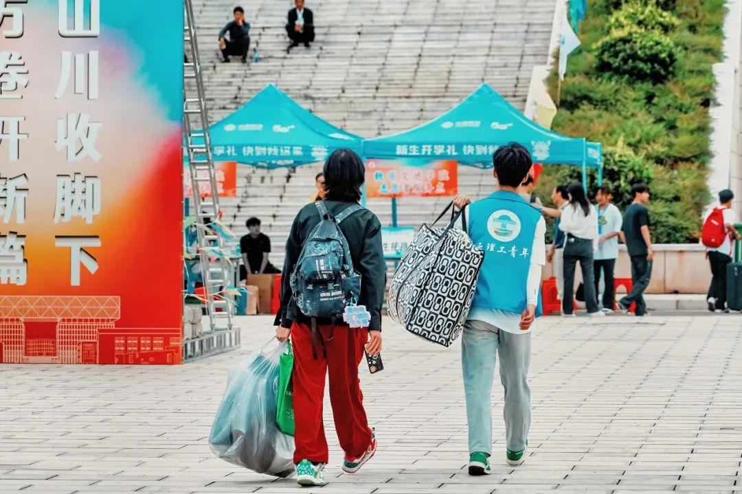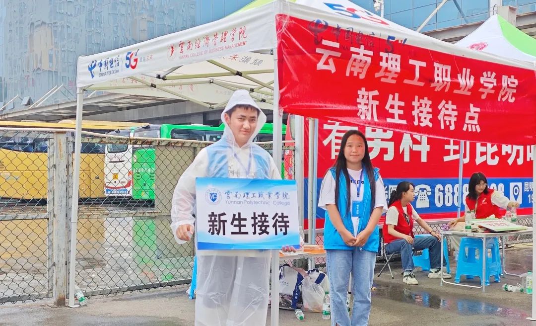 校园外,伴着清晨淅淅沥沥的雨滴志愿者们早早在迎新站点就位守候每一位奔向他们的兴奋脸庞