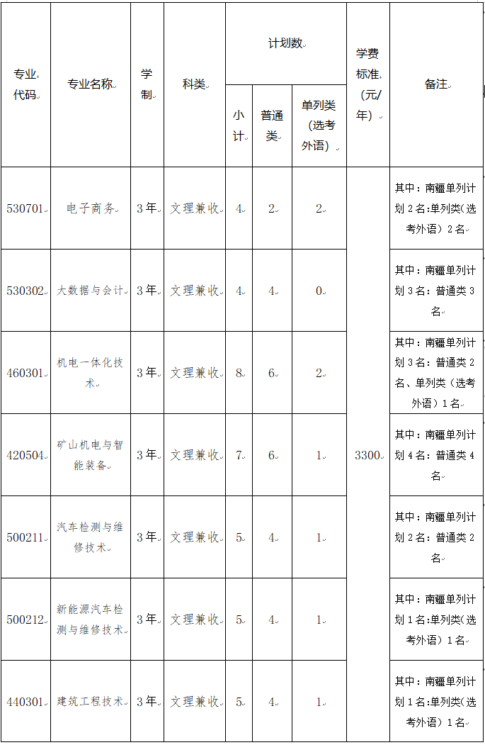 第二章 招生专业、计划及收费标准
