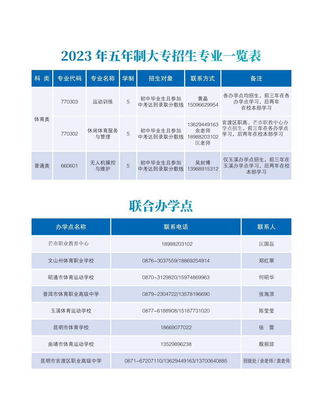 云南体育运动职业技术学院2023年招生简章(五年制)