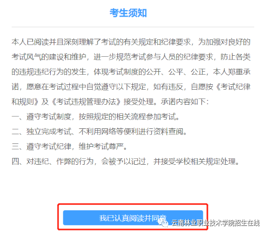7.阅读考生须知。点击“我已认真阅读并同意”。