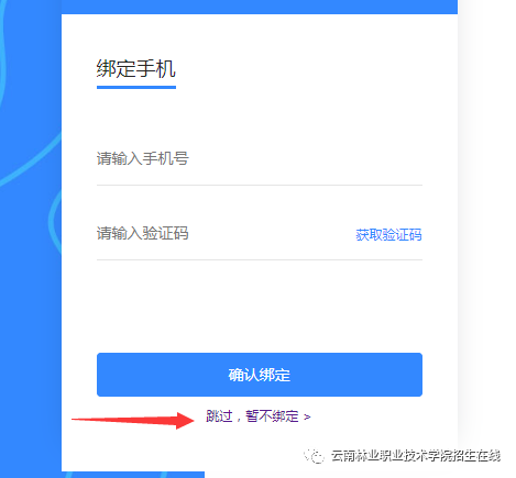 2.绑定手机号选择“跳过,暂不绑定!!!”。