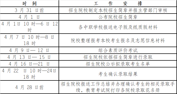 十二、“直升专”招生工作时间安排表