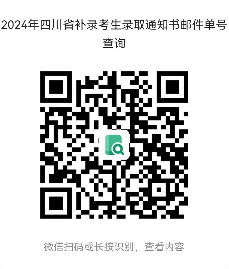 石河子工程职业技术学院2024年四川补录已结束,请考生于2024年10月8日到校报到,录取通知书于9月27日邮寄,请已录取考生扫描下方二维码,输入本人身份证号,查询本人邮件单号及所属辅导员信息,学院统一使用EMS进行邮寄,如通知书长时间未收到,可根据邮件单号信息电话咨询中国邮政。