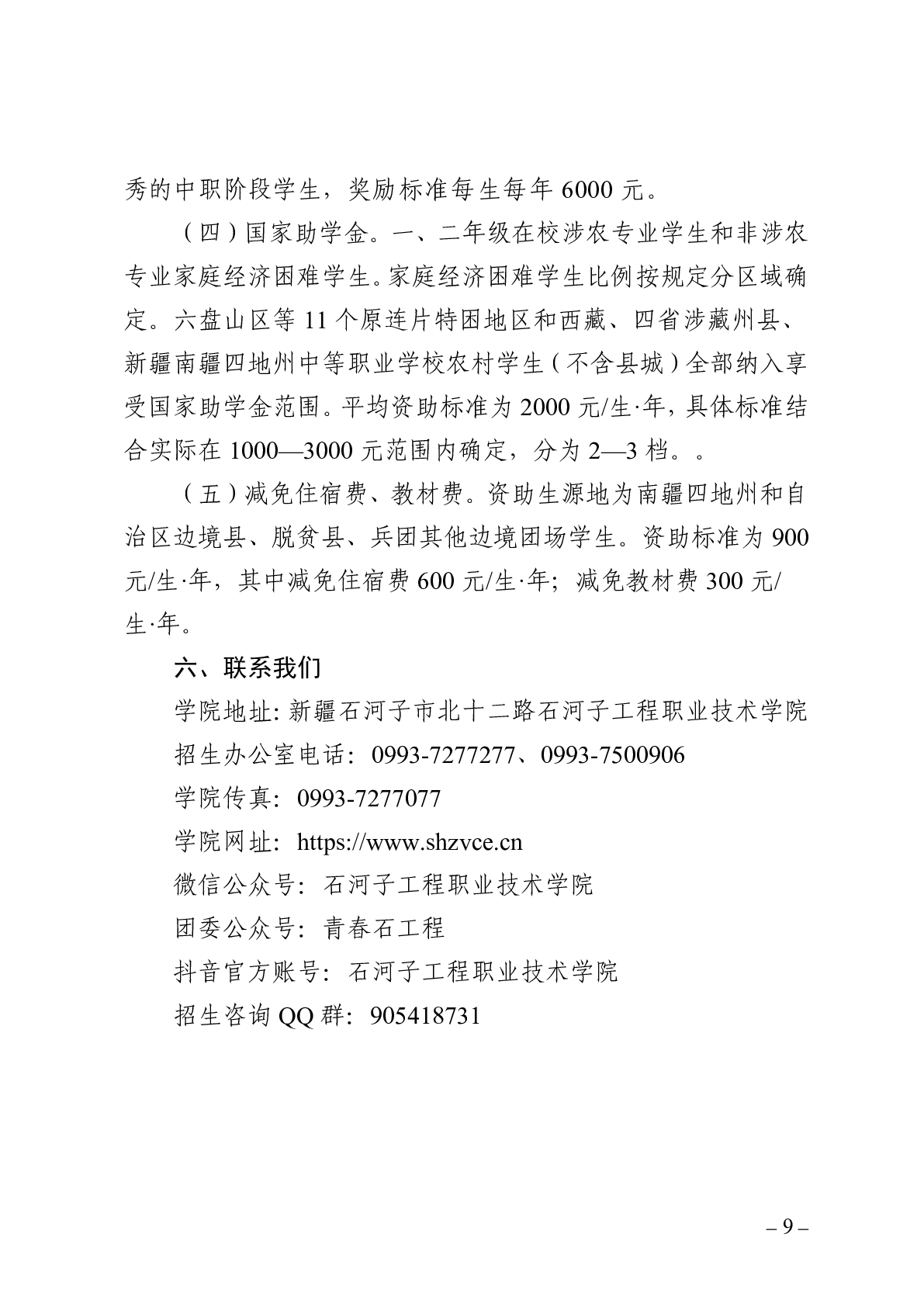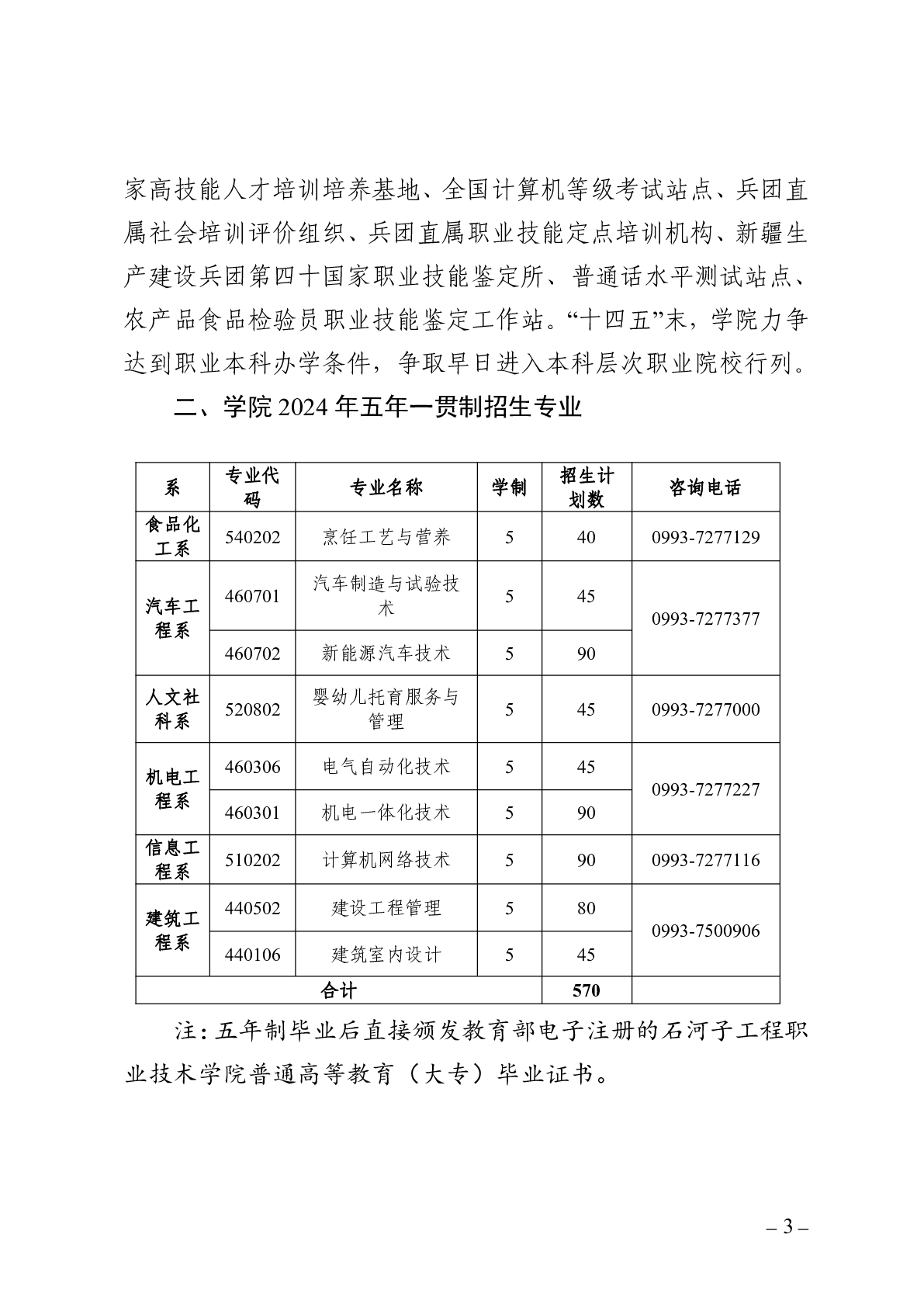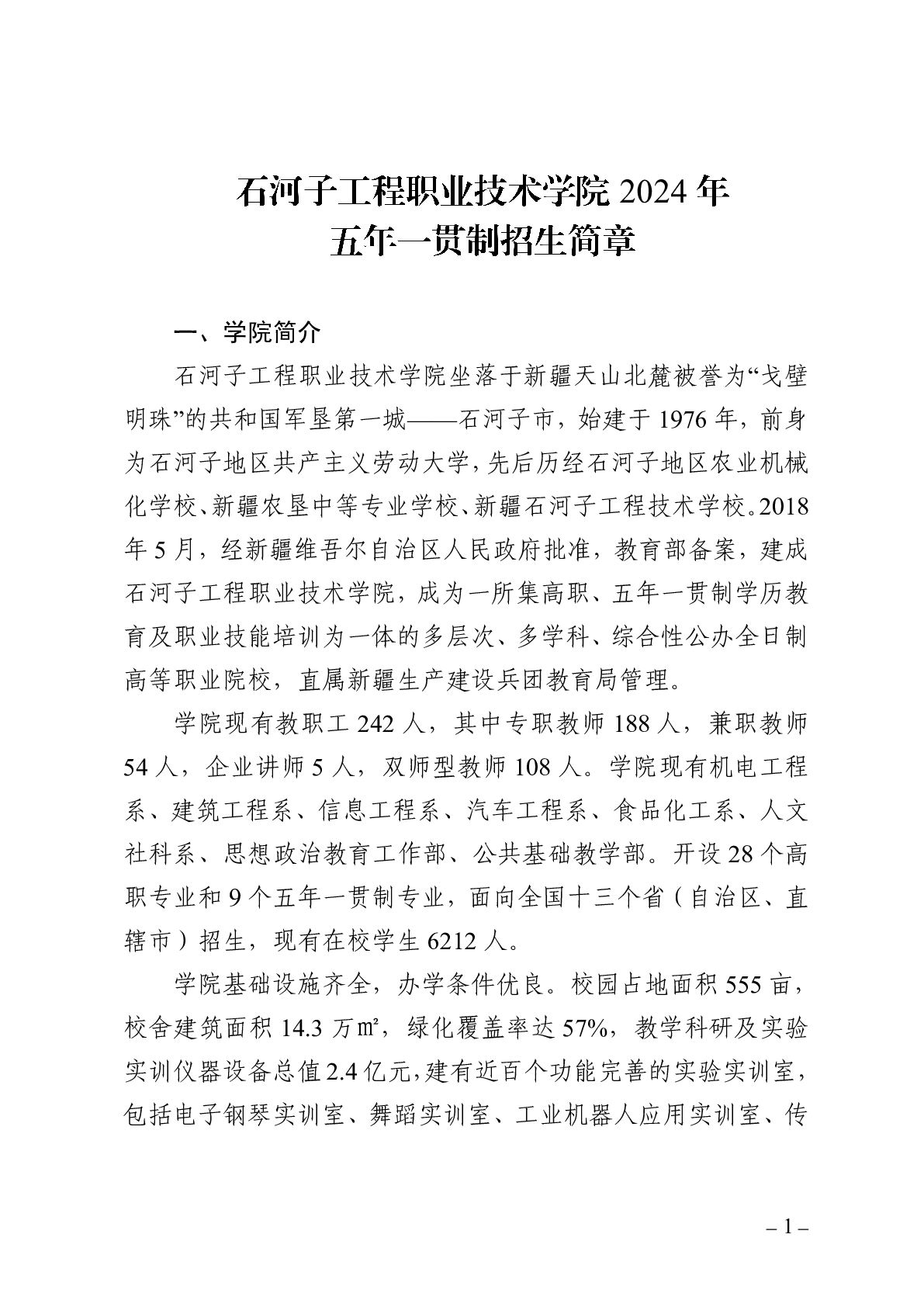 石河子工程职业技术学院2024年五年一贯制招生简章