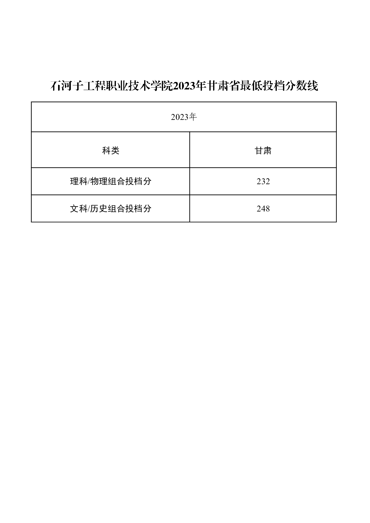 石河子工程职业技术学院2023年甘肃省最低投档分数线