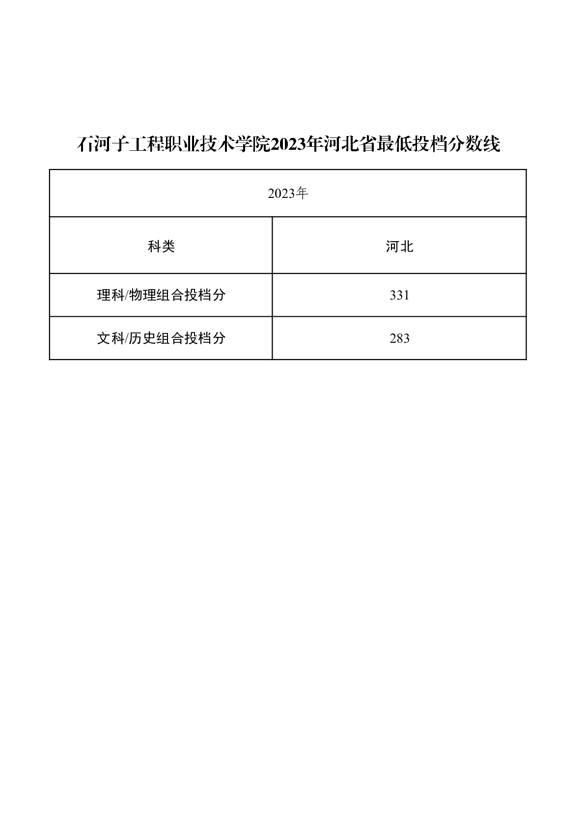 石河子工程职业技术学院2023年河北省最低投档分数线