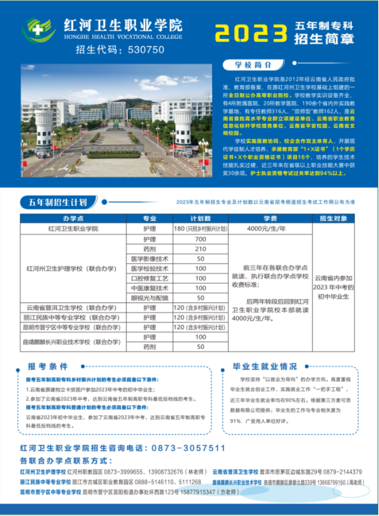 2023年红河卫生职业学院五年制大专招生计划