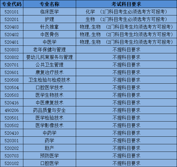 注:1、分省分专业招生计划以各省级招生考试管理部门公布为准。 2、高职(专科)所有专业学制均为三年。 3、院校代号如果查询不到请致电0871-68301823。 4、涉及高考综合改革省市的选考科目要求如下图所示。