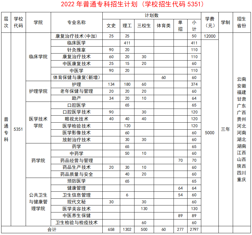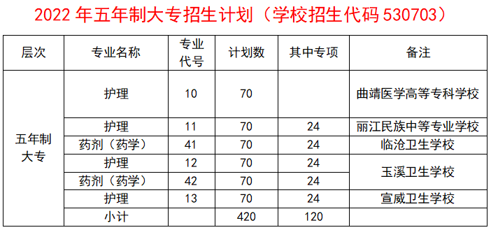 注:办学地点在联合办学点的考生,前3年在联合办学点就读,后2年在曲靖医学高等专科学校就读。