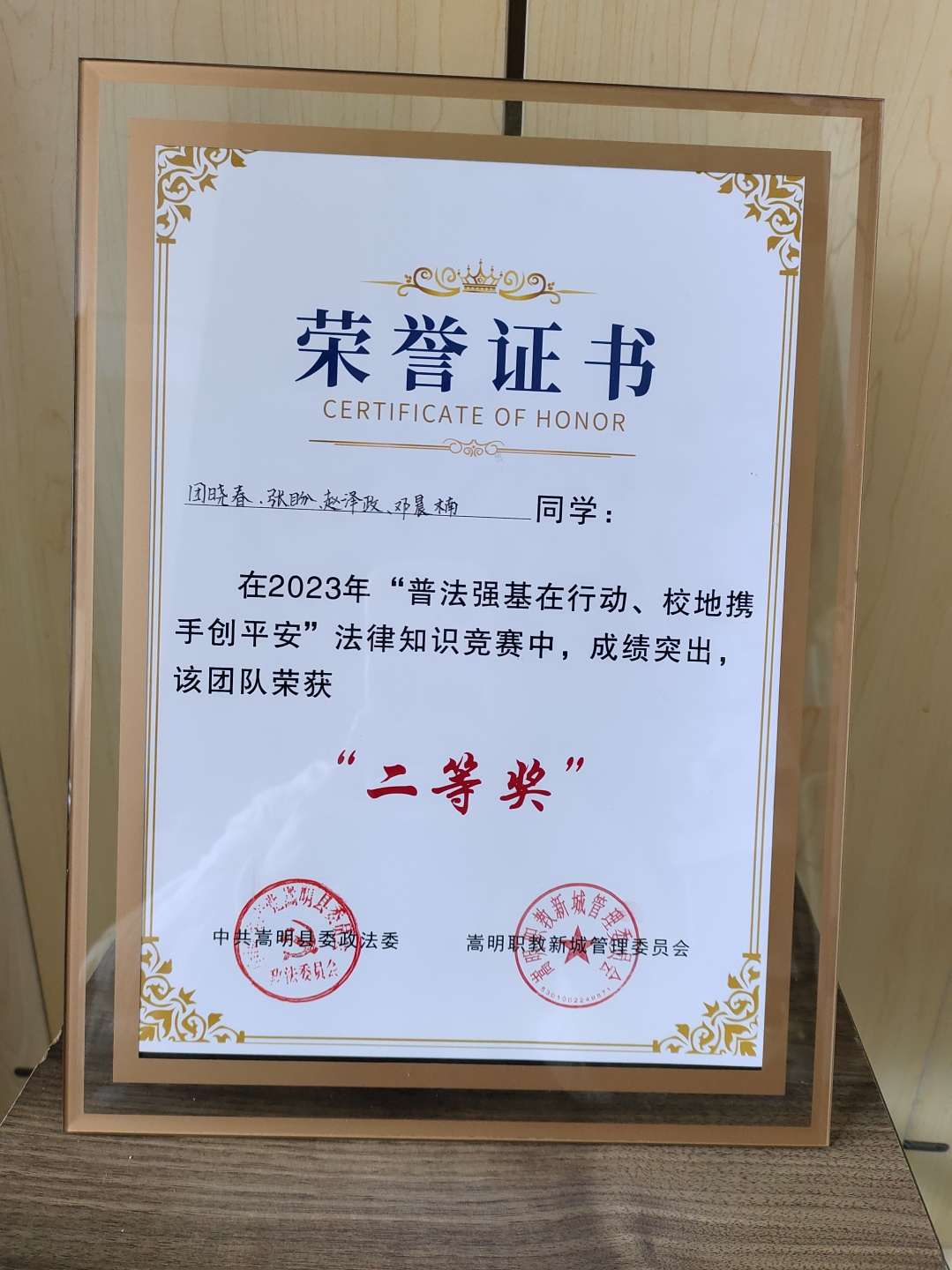 6.嵩明职教新城2023年“普法强基绘画作品大赛”中,成绩优秀,荣获二等奖;