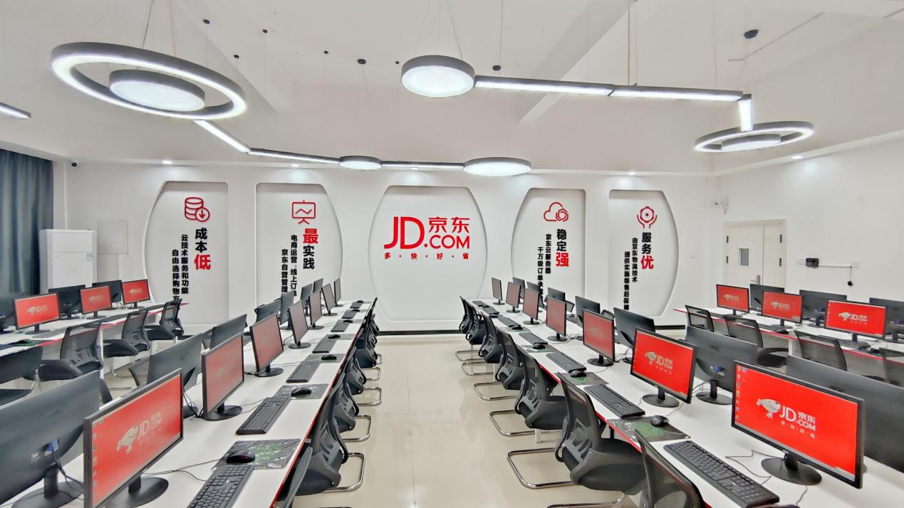 学院是学校与世界500强京东集团联合打造的特色产业学院。学院对接京东直播、短视频、电子商务、仓储、物流、大数据等全链条产业,以京东集团用人标准并融入技能证书标准构建人才培养体系。通过真实还原企业场景、京东产业及项目进校园、考取京东职业技能认证等方式,以产促学,以学促产,在“实战”环境中培养高素质技能人才。