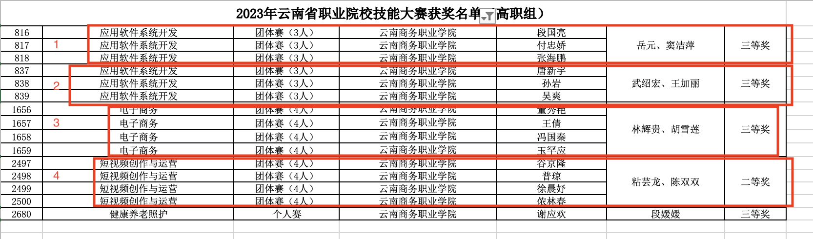 2.2023年云南省职业技能大赛(高职组)应用软件系统开发三等奖2个;