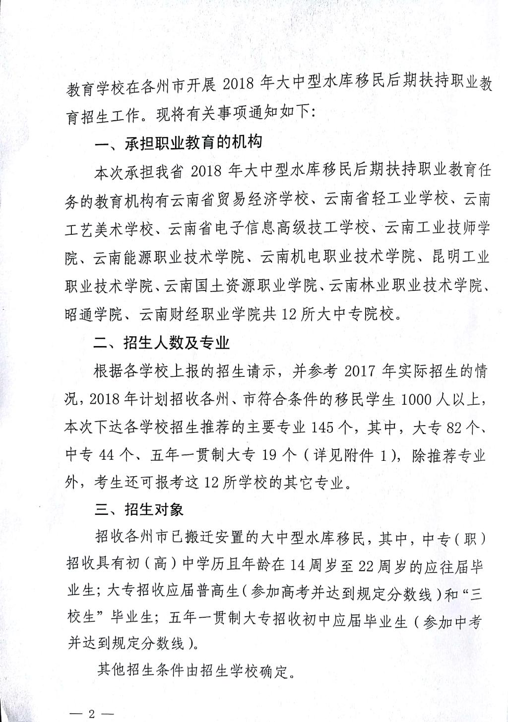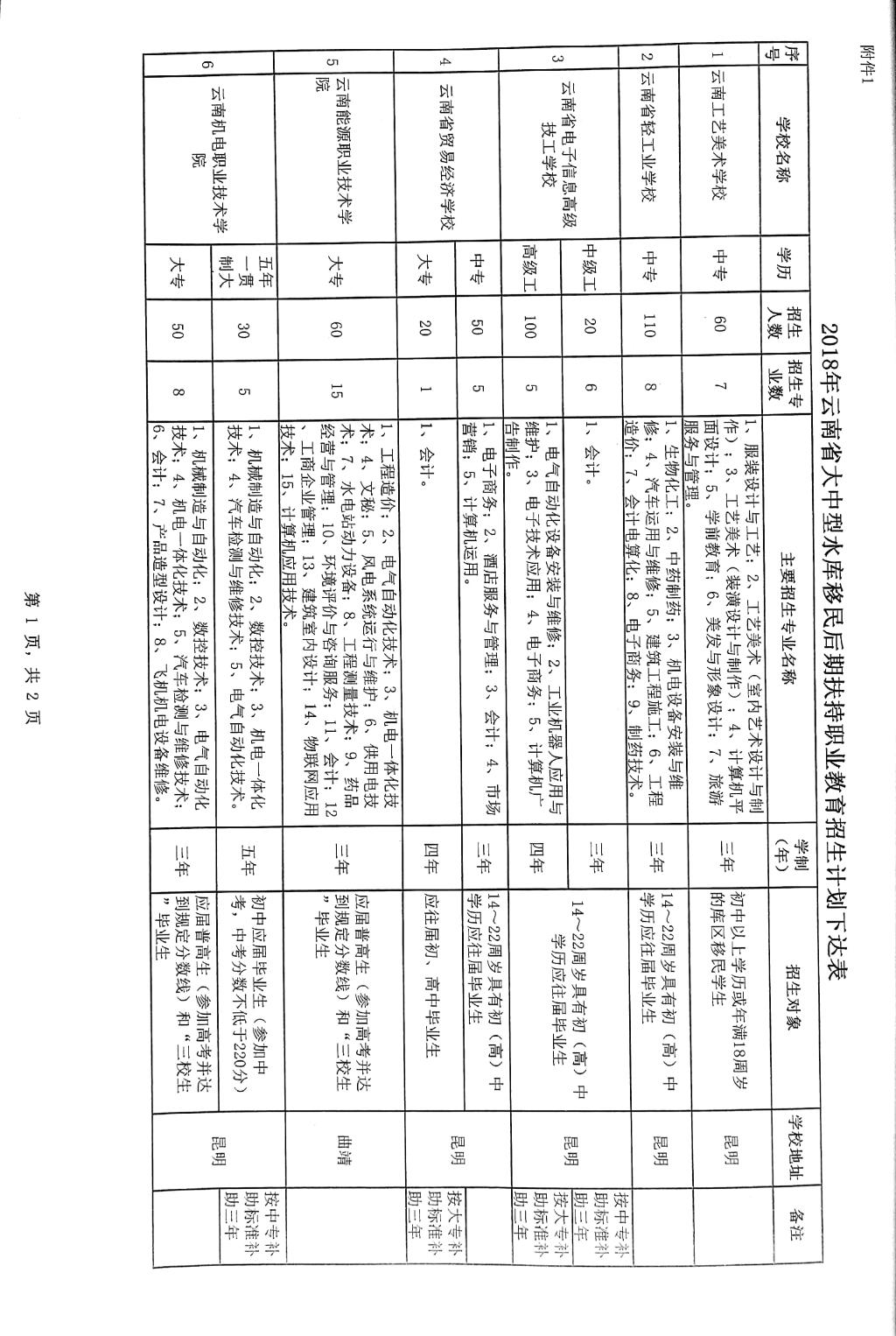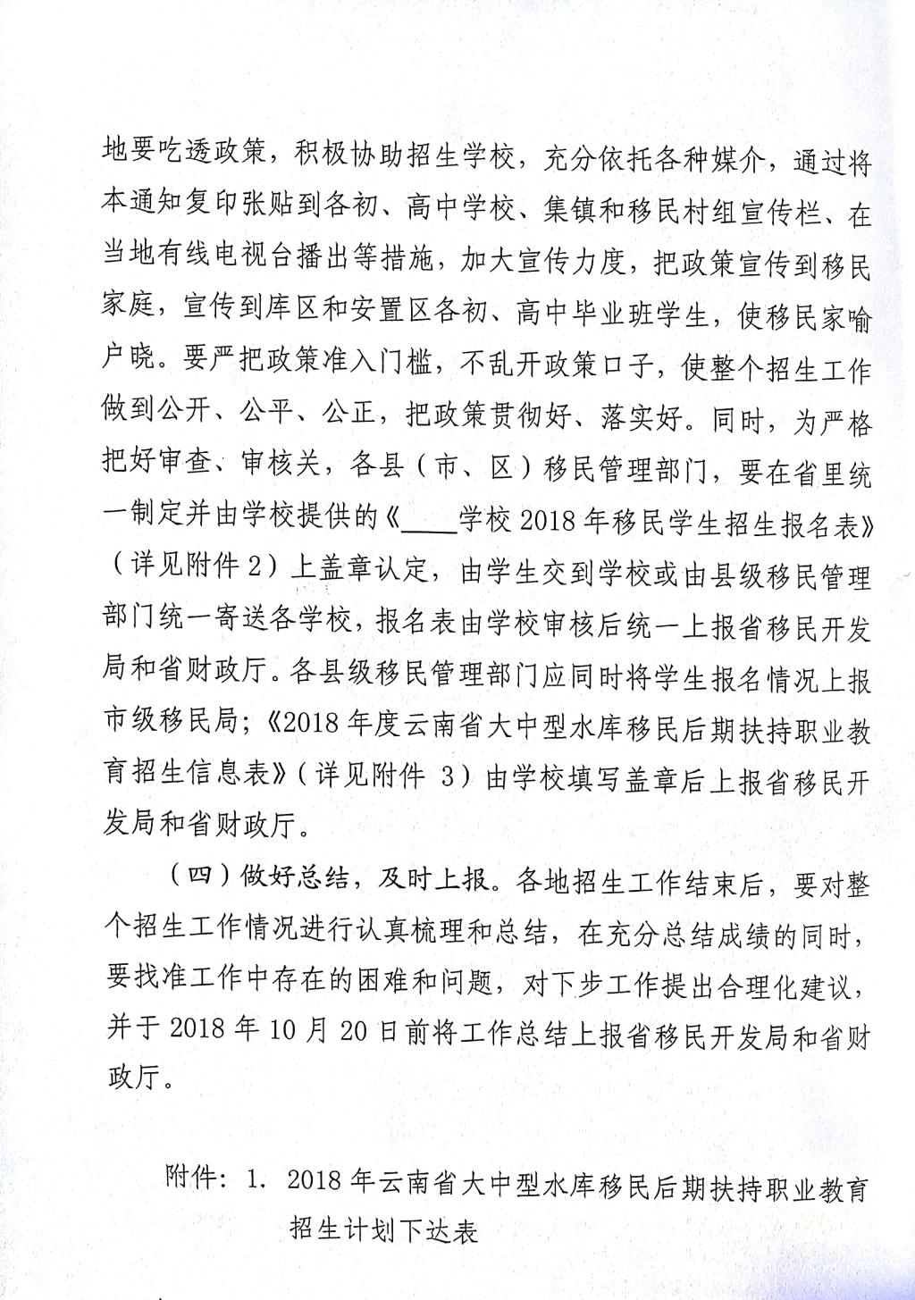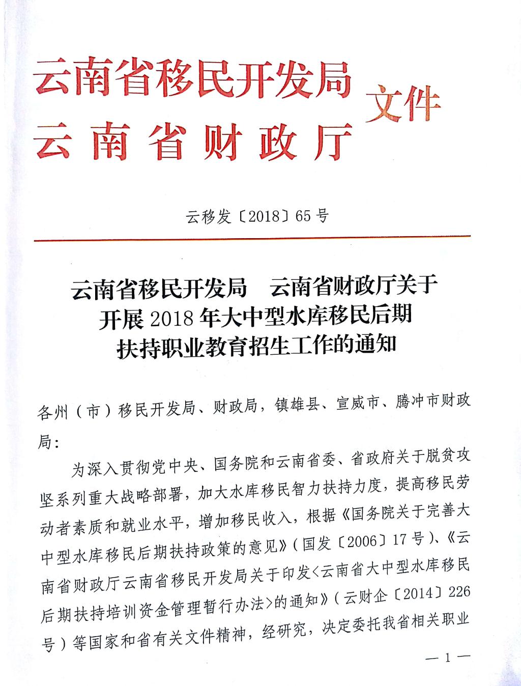 云南省移民局 云南省财政厅关于开展2018年大中型水库移民后期扶持职业教育招生工作的通知