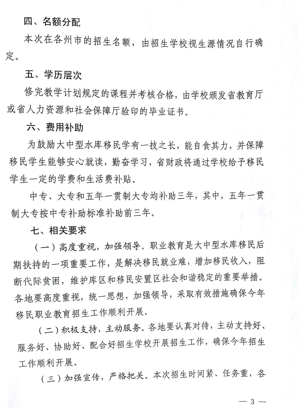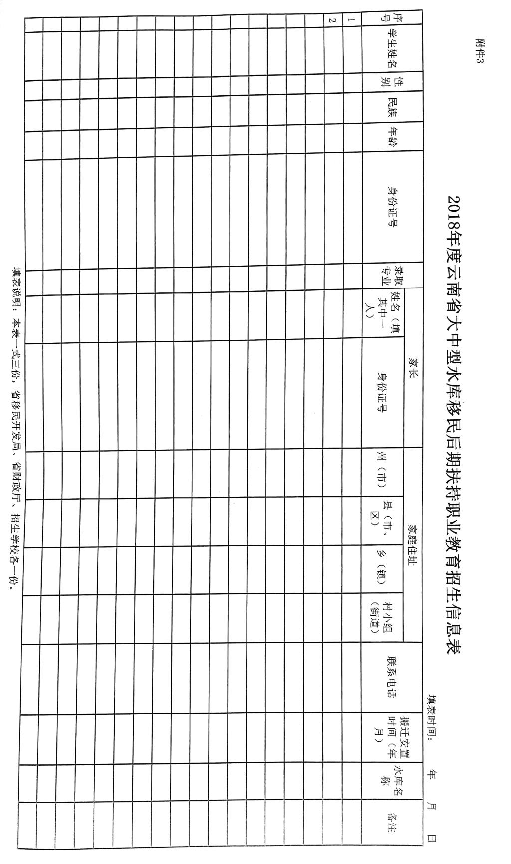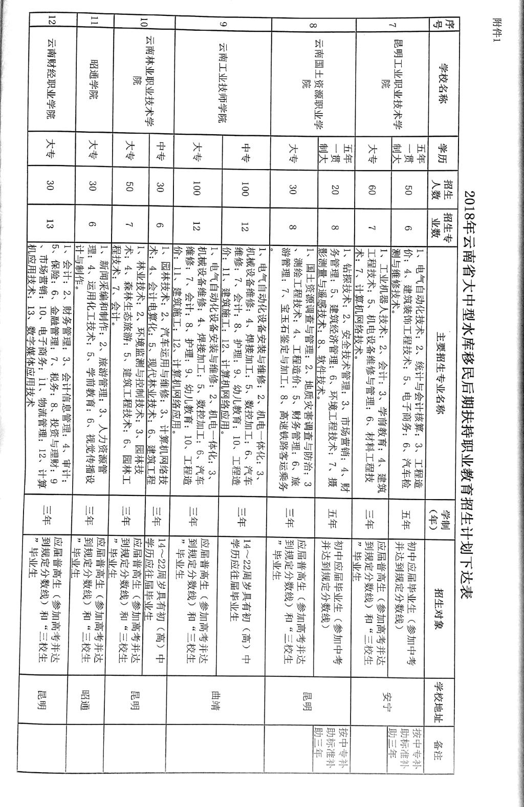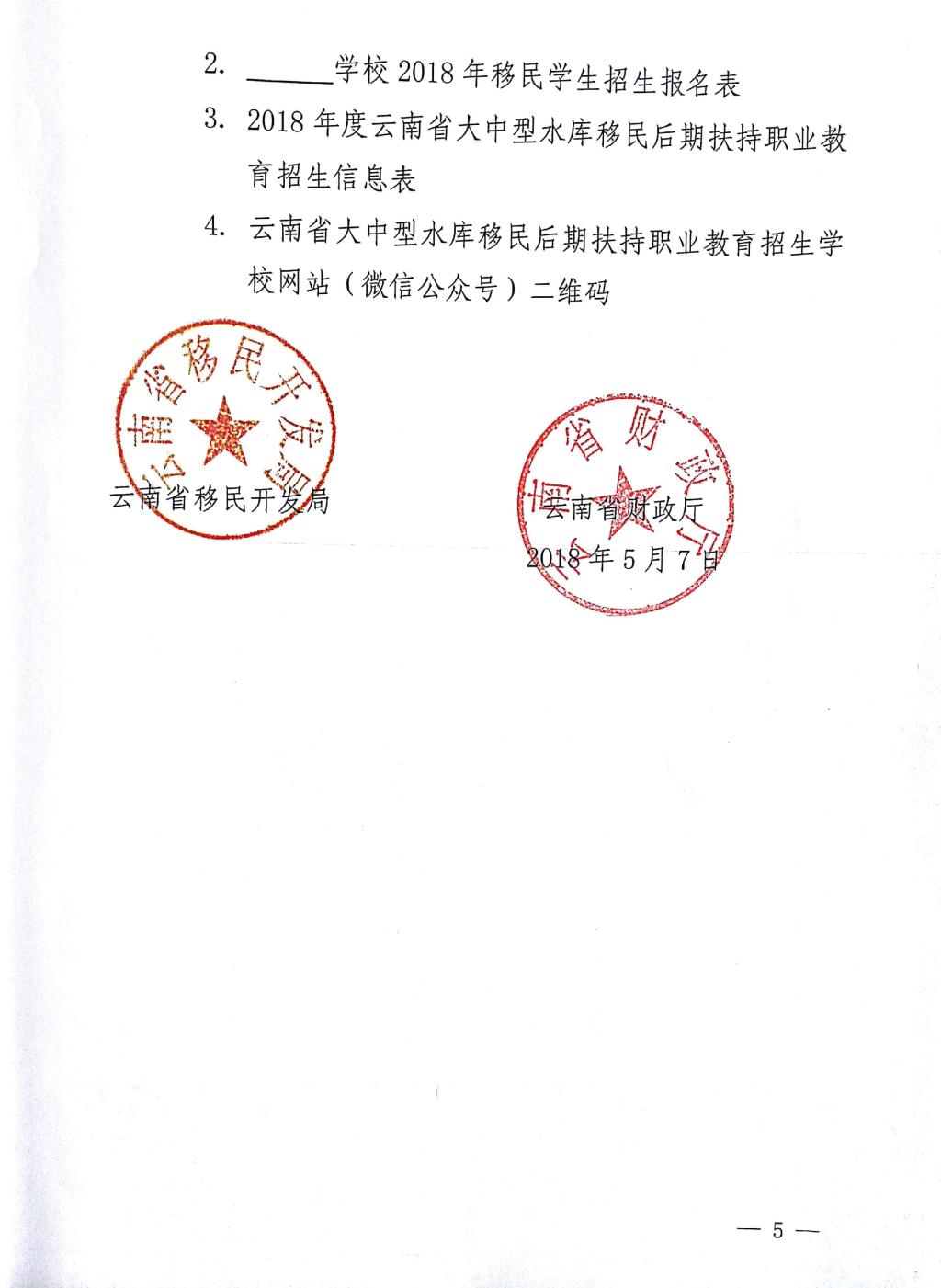云南省移民局 云南省财政厅关于开展2018年大中型水库移民后期扶持职业教育招生工作的通知