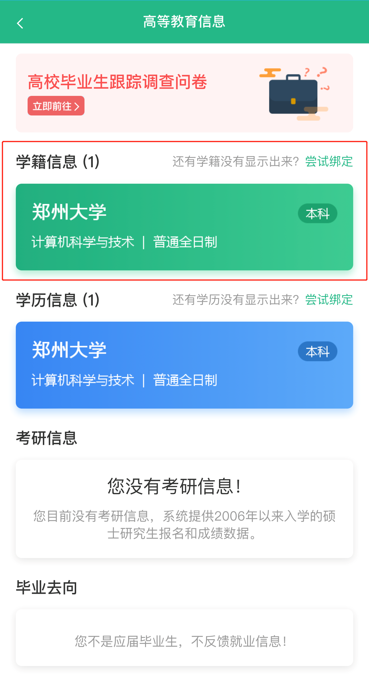 1关注学信网公众号,绑定学信网账号,点击“学信账号”,查看学籍学历信息
