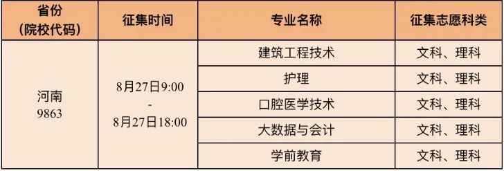 (征集志愿相关工作安排以河南省教育主管部门最终发布为准)