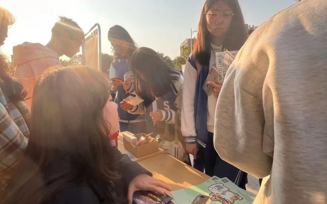 我们准备的广外校徽拼图游戏和抽奖活动吸引了学弟学妹们的关注,看着他们暂时放下繁重的学业,露出一个个青春洋溢的笑脸,在展板上写下目标与愿望,我们也很高兴能给他们带来一些快乐,缓解高三紧张的氛围和学习压力。