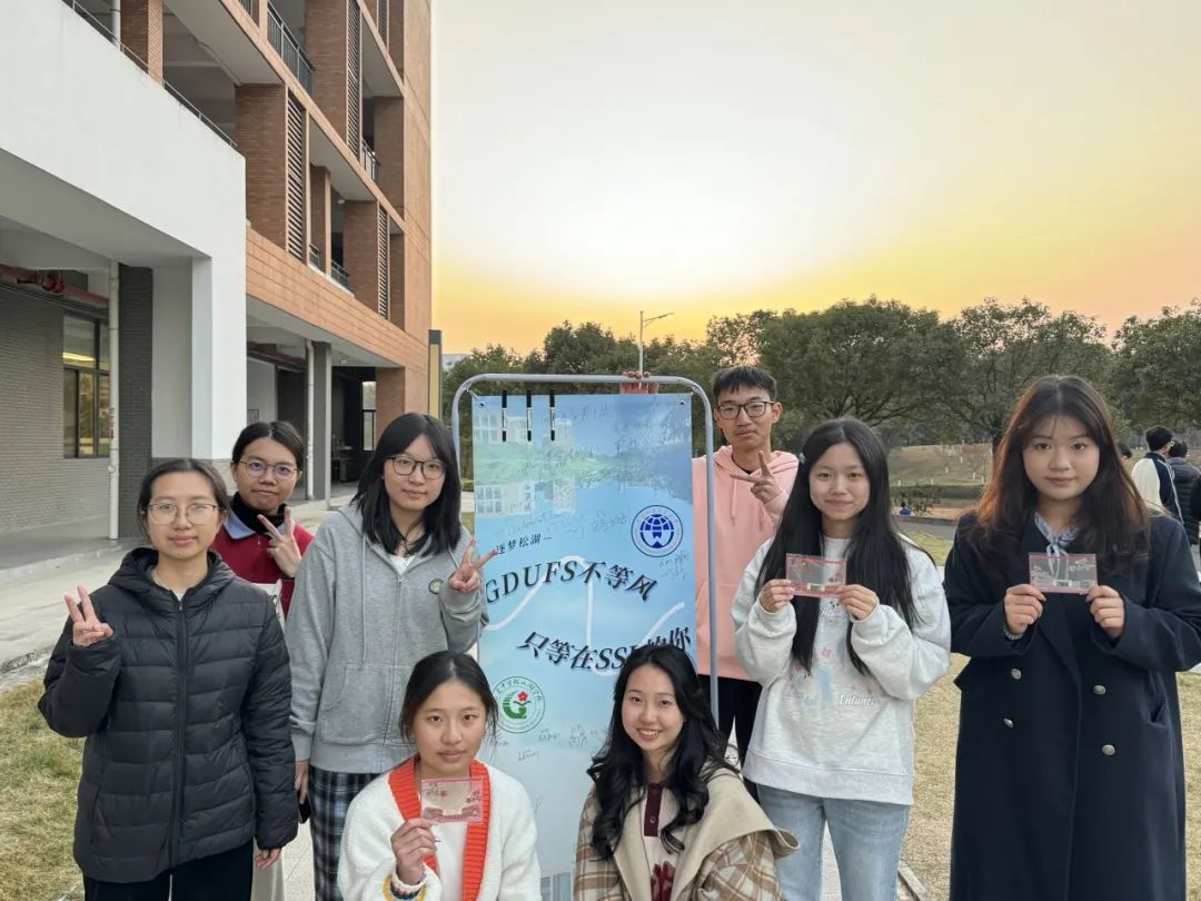 金秋时节,我们组成寒宣小队,并着手准备本次活动的策划与实施。我们共展开了四次筹备会议,分工协作,除了常规宣传形式,我们特别设计定制了海报展板供大家签字涂鸦,还DIY了广外景色明信片,在背面写上了我们对学弟学妹们的鼓励与祝福。