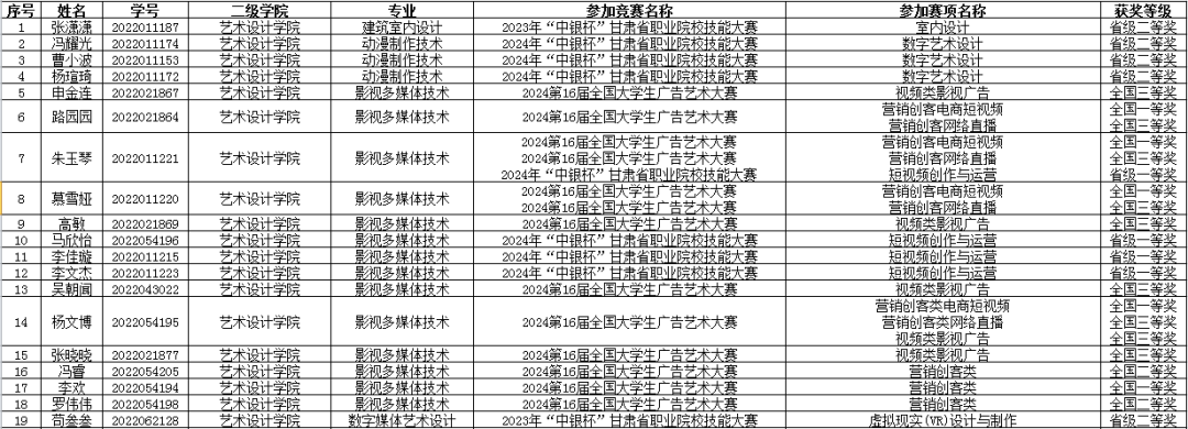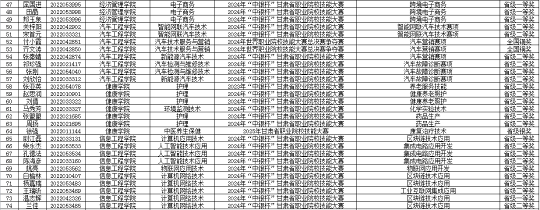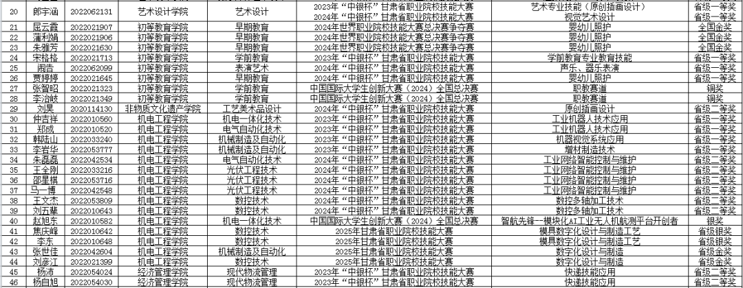 2025年专升本符合免试入学报名资格竞赛获奖学生名单