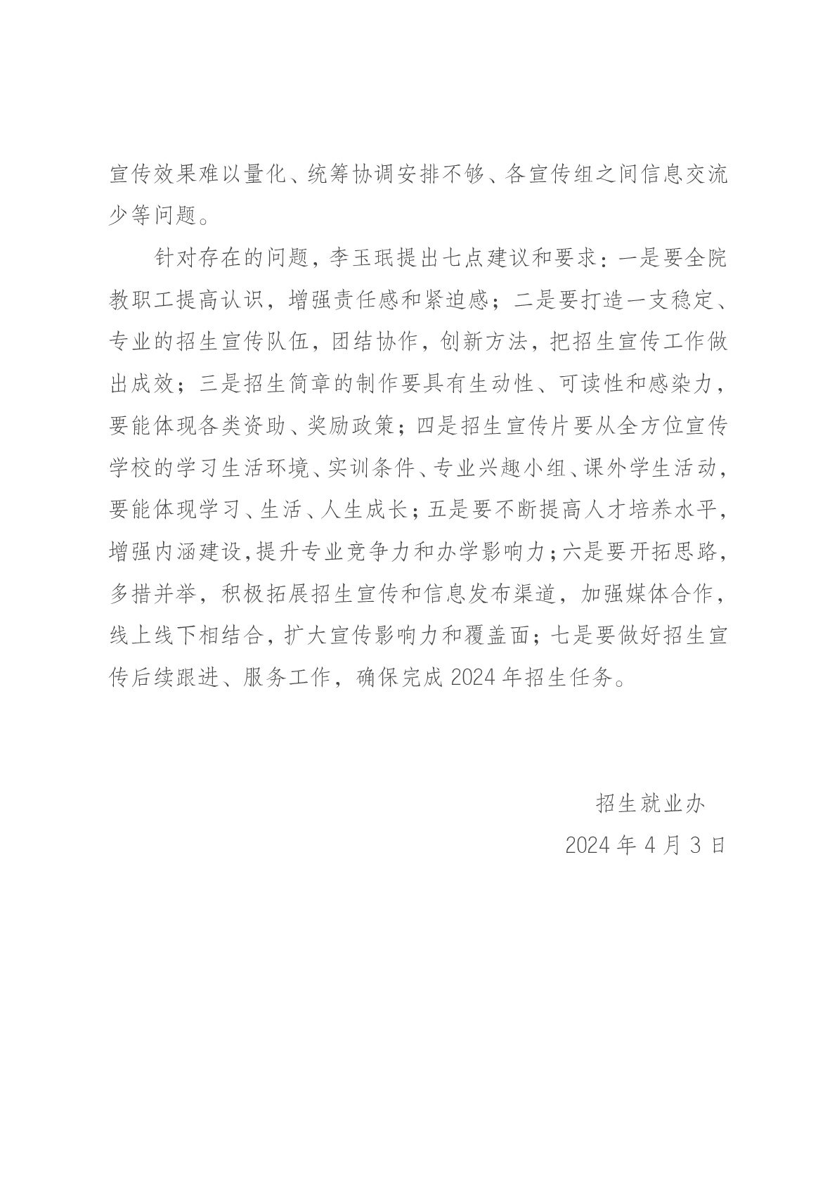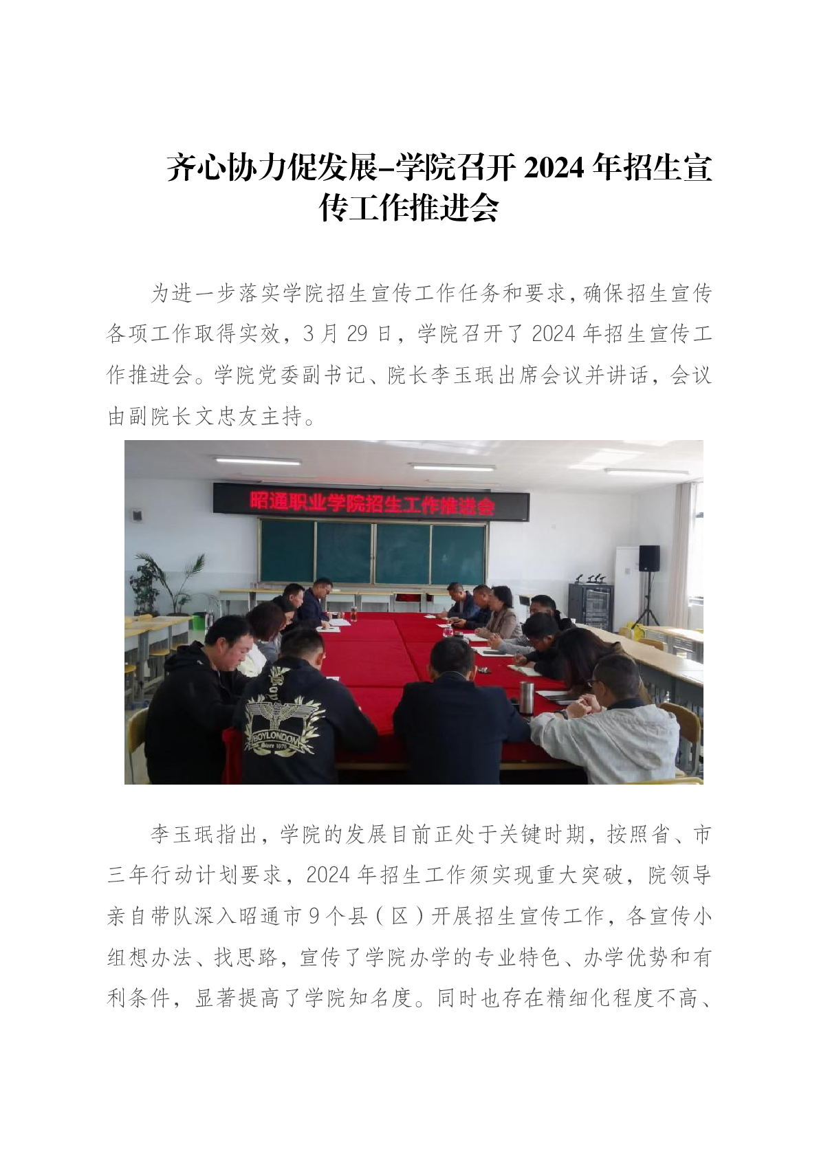 齐心协力促发展--学院召开2024年招生宣传工作推进会