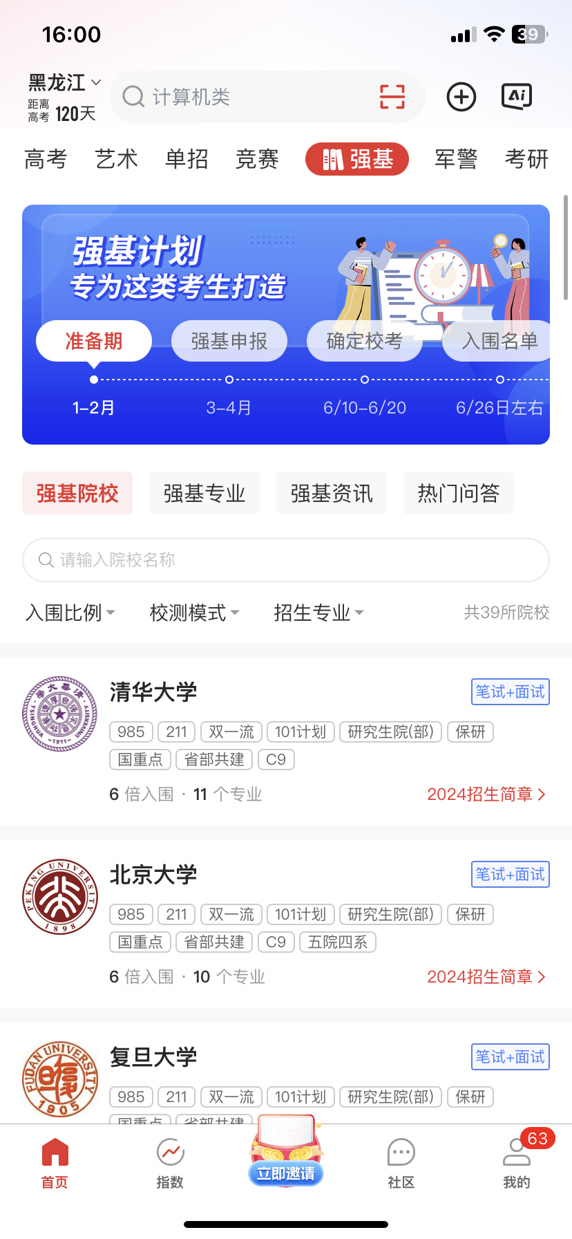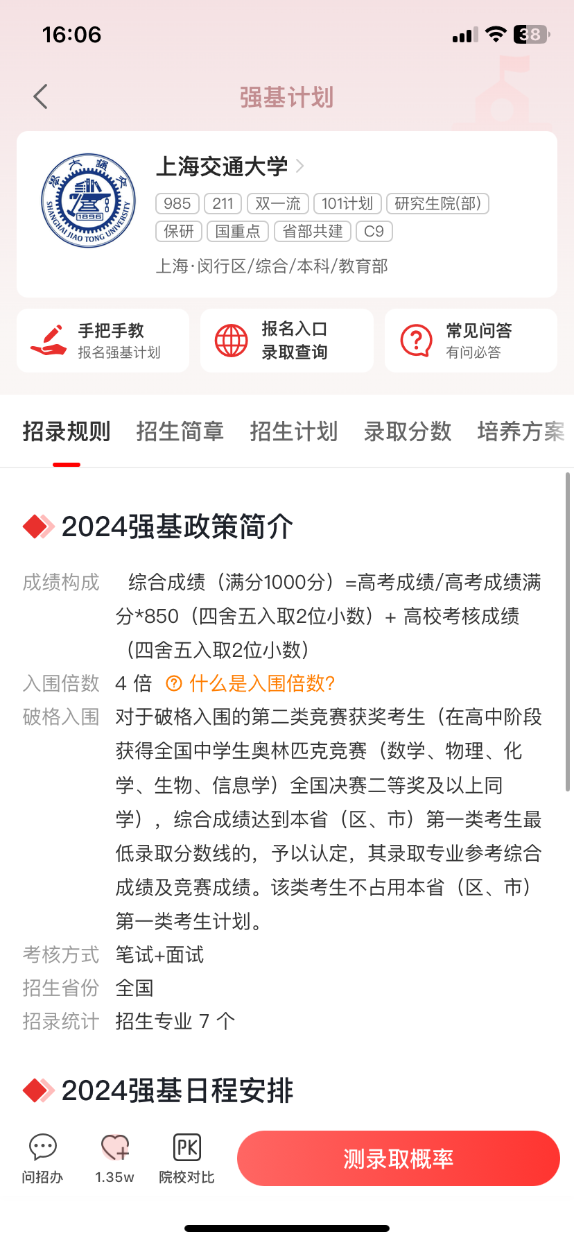 优志愿APP强基计划专栏整理各强基院校的招生细节、成绩构成比例、入围标准及考核方式等全面信息。