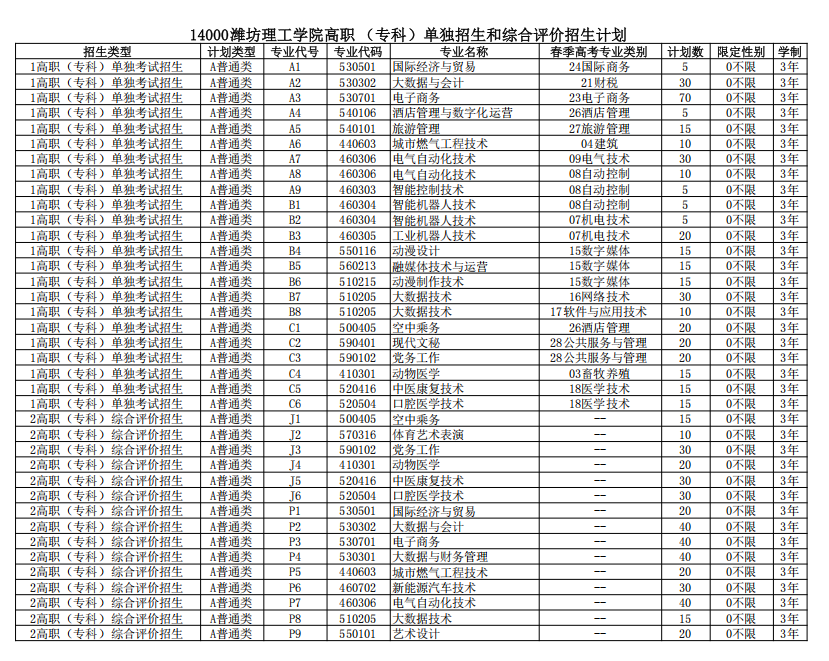 潍坊理工学院2025年高职(专科) 单独考试招生、综合评价招生考试方案