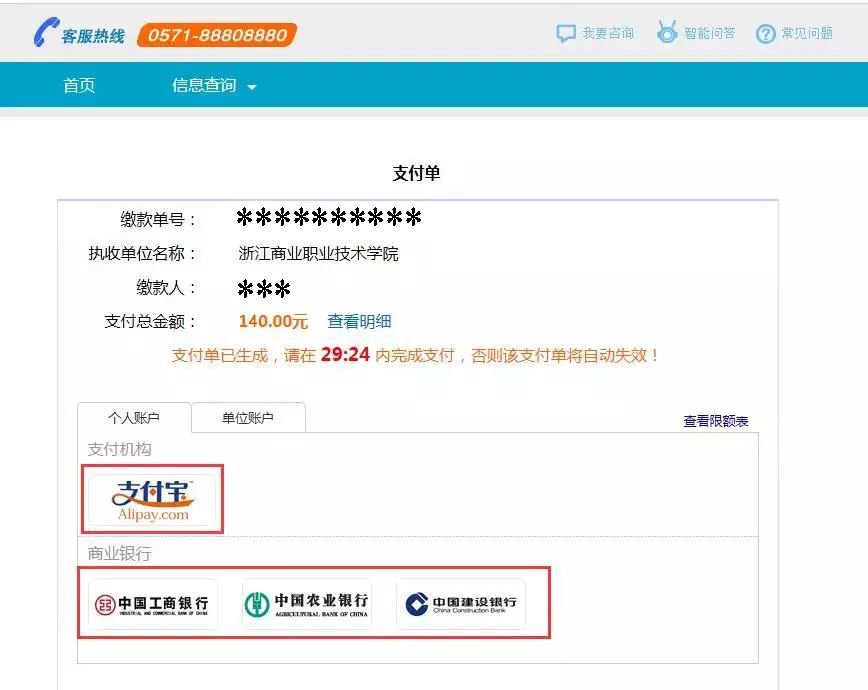 省内外均可选择建行网上银行或建行手机银行缴费(建行咨询电话:95533)或工行网上银行缴费。(工行咨询电话:95588)