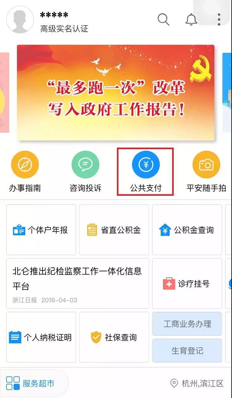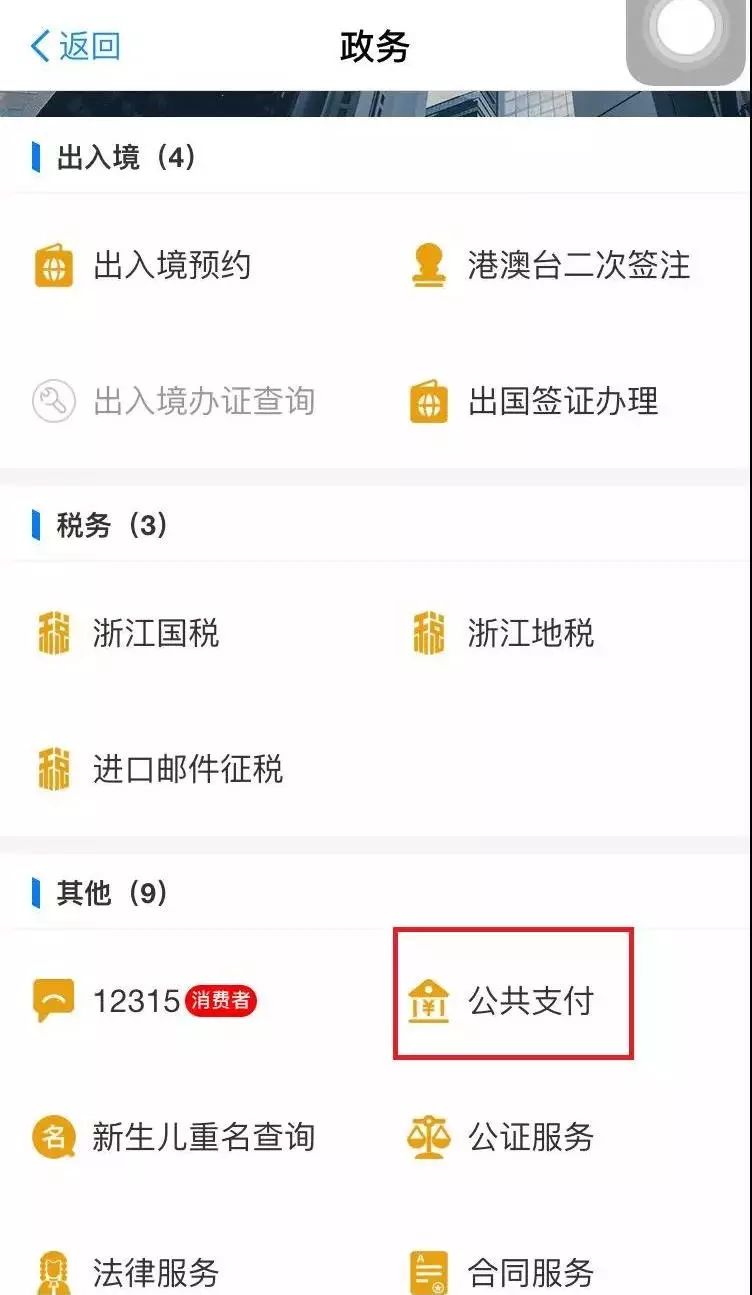 或打开支付宝APP—“城市服务”—“政务”—“公共支付”