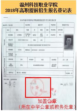 ① 温州科技职业学院2018年高职提前招生报名表(需加盖所在中学公章);