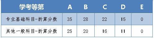 依据考生所报考专业的专业基础科目和其他一般科目,按各自科目类别等第折算分数,换算关系如下:
