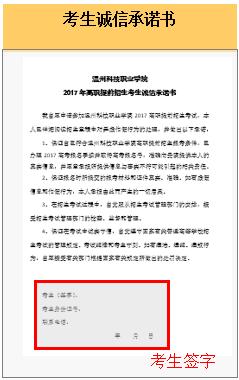④ 《温州科技职业学院高职提前招生诚信考试承诺书》(在学校招生网下载打印,仔细阅读并签字确认);