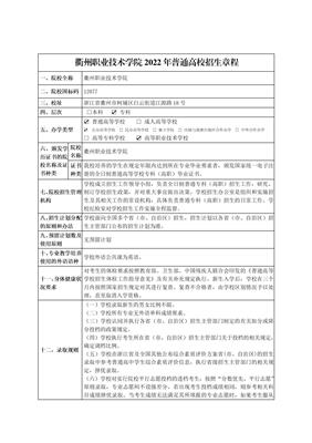 衢州职业技术学院2022年普通高校招生章程 | ||
