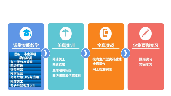 电子商务专业是我校重点打造的专业之一,贯彻“残健融合,协同共培”育人理念,建立校企联动的人才培养服务体系,精准对接目标岗位发展要求;构建四化引领的人才培养课程体系,精准聚焦目标岗位适应能力;打造四环递进的人才培养实践体系,精准培养目标岗位工作能力;设计四真驱动的人才培养资源体系,精准供给目标岗位真实任务。专业与浙江圆通速递有限公司、谦寻(杭州)文化传媒有限公司、杭州亦程控股有限公司、杭州协享智汇科技有限公司、杭州沐垚科技有限公司、杭州大音希声传媒文化有限公司等企业合作,依托企业的真实项目,学生在企业专家的指导下,进行项目化全真实践,掌握相应岗位“真功夫”,形成特色鲜明的“残健融合、校企联动、四化四环”人才培养新模式。