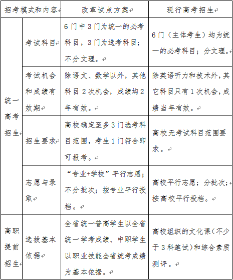 三十一、试点方案与现行高考有哪些区别?