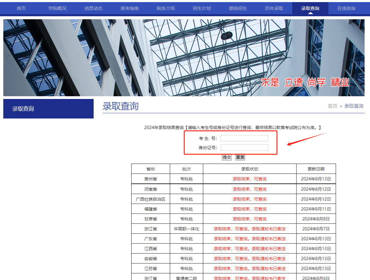 点击录取查询模块。