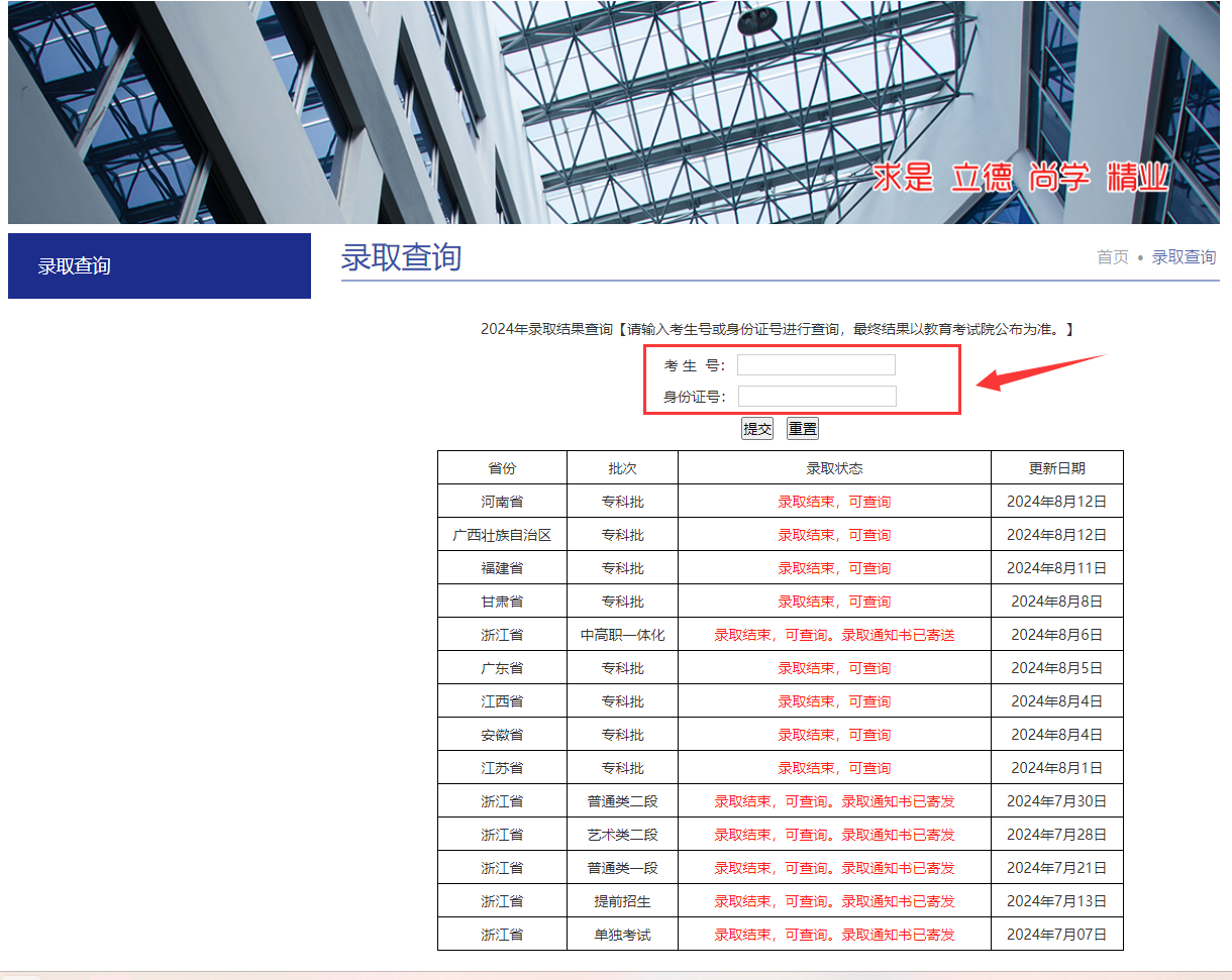 点击录取查询模块。