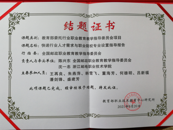 专业教师团队具有丰富教学、实践经验,参与多项教育部、国家邮政局、浙江省教育厅各类科研项目。参与了教育部委托行业职业教育教学指导委员会项目《快递行业人才需求与职业院校专业设置指导报告》。建设有省级精品在线课程《快递客户服务与营销》、市级精品在线课程《快递法规与标准》。《快递服务概论》课程参加浙江省高校2021年度课程思政教学改革系列活动,“优秀教师说课程思政”微课征选、课程思政典型案例征集。荣获2023年绍兴市高校课程思政优秀案例征集评选活动二等奖。在我校建立了1+X快递运营职业技能等级证书考核站点,提升学生专业技术能力。