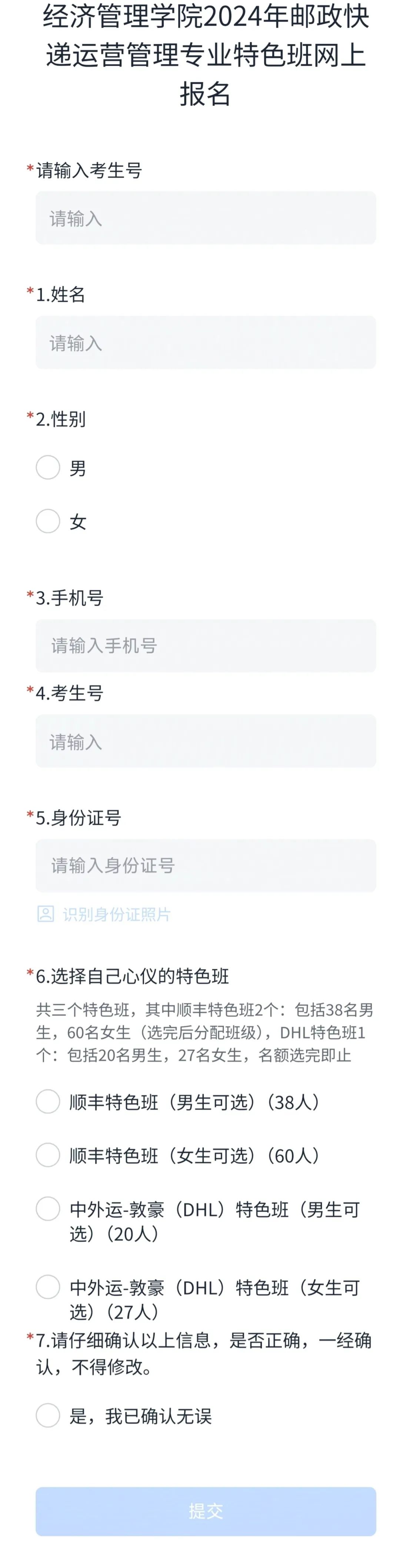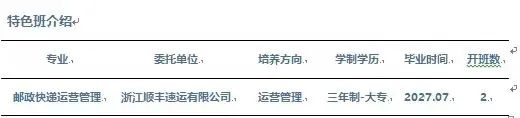 • 招生对象:已经被我院2024级邮政快递运营管理专业录取的学生