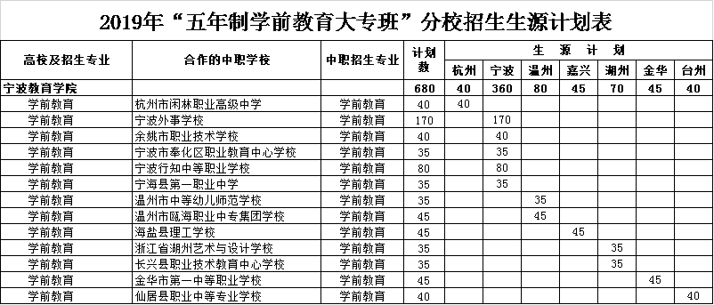 学前教育专业是宁海县品牌专业,拥有20多个学前教育专业实习基地,学校配备现代化一流实训基地(多媒体排练厅、电钢教室、声乐排练厅、雅马哈钢琴房、珠江钢琴房、幼儿园模拟实训室、美术工作室、美容美发工作室等)提供学前教育专业学生实训场地。拥有一批具有丰富教学经验的市名师、骨干教师、教坛新秀等任文化课教师;聘请宁海县名园长、名教师等担任兼职教师和教学导师,打造了“名师讲堂”的教师队伍。我校毕业生就业率达到100%,毕业生大多就业县级、乡镇公办幼儿园。