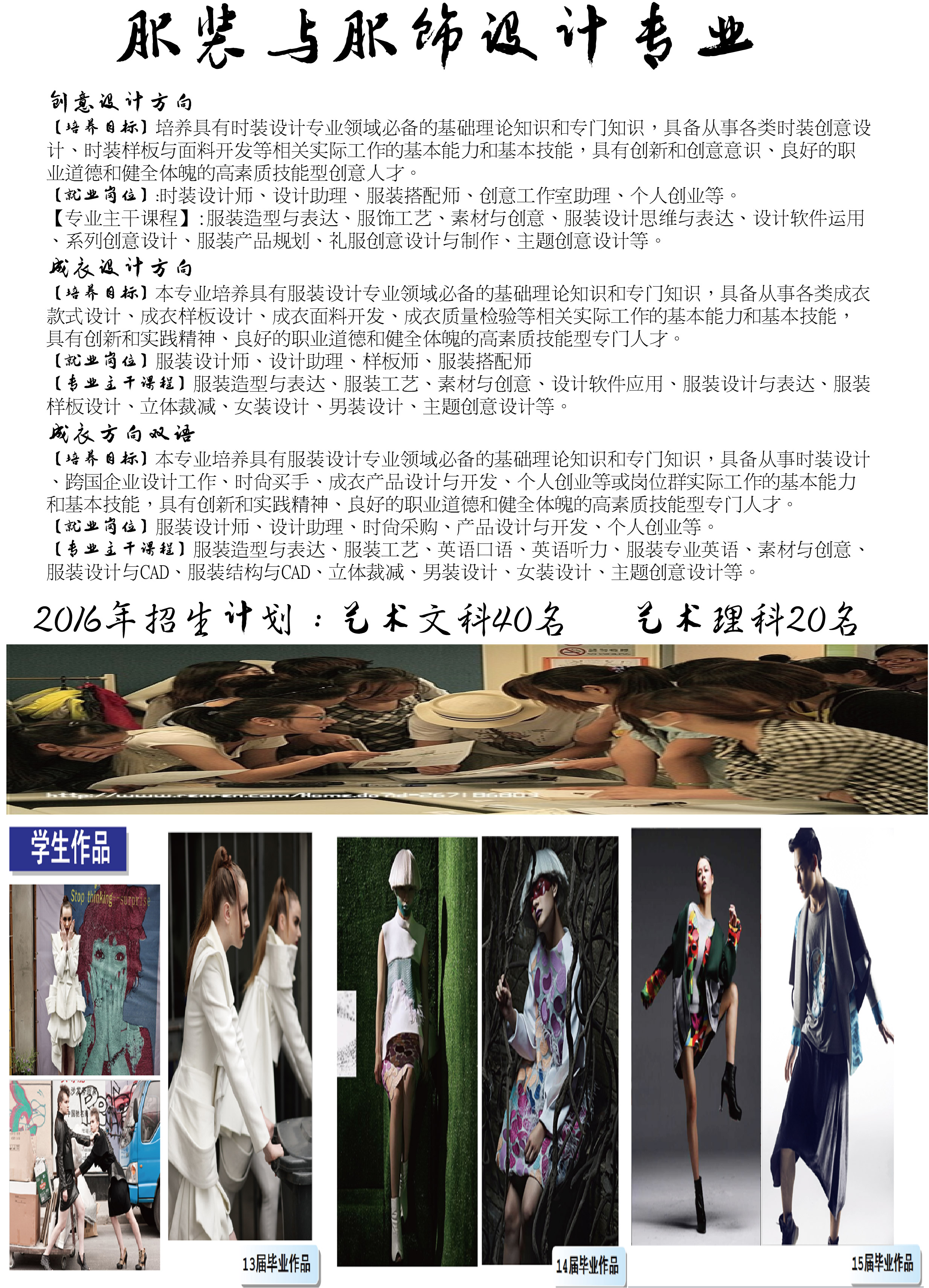 2016年艺术文理招生专业介绍--服装与服饰设计