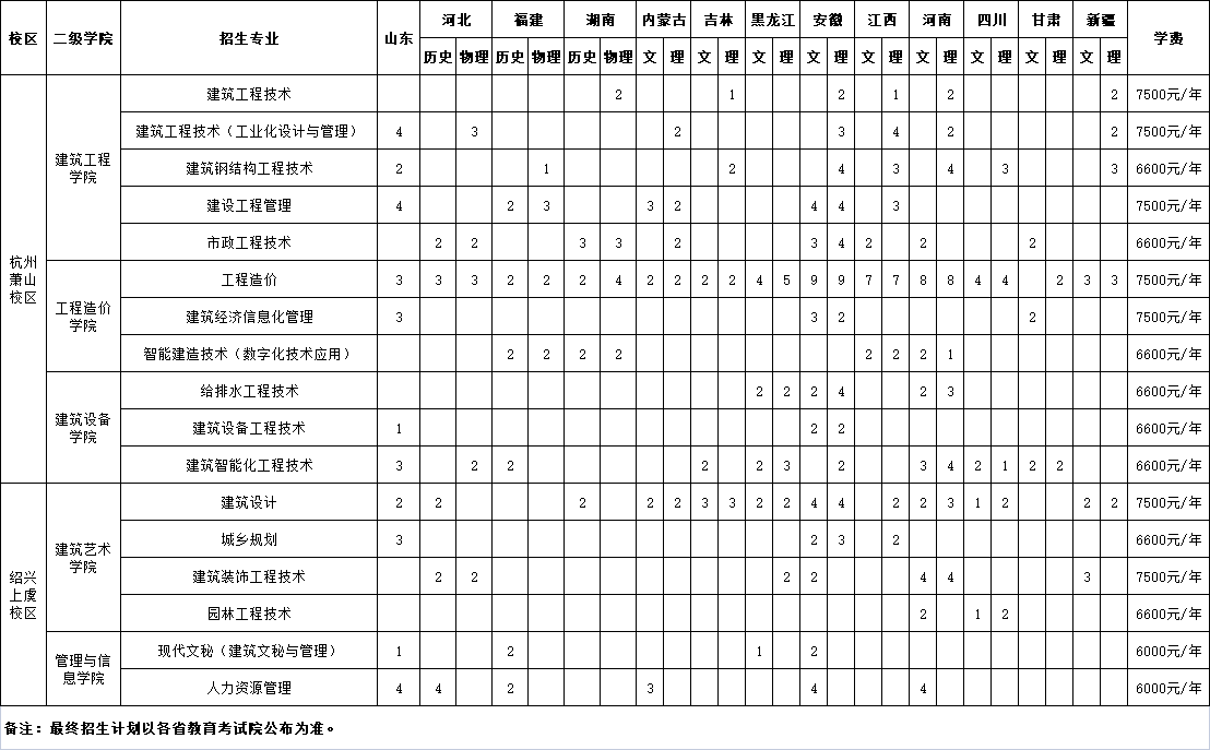浙江建设职业技术学院2023年省外普高招生计划.xls