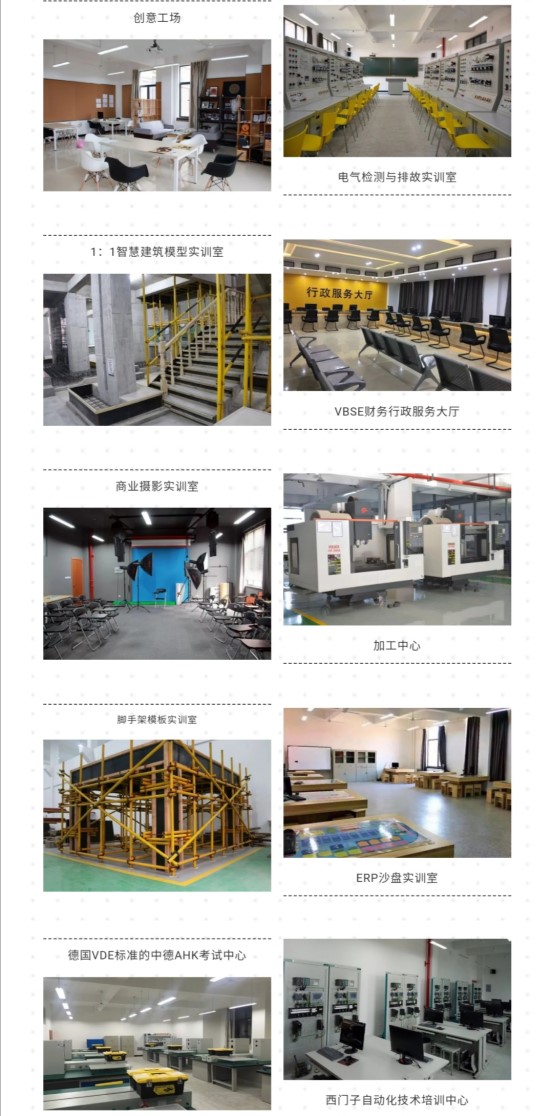 3.专业建设有思路,热门专业计划多 目前学院已形成了建筑、船舶、机电、轨道交通、设计、信息、经济、管理的八大专业群共30个专业,其中2个省级优势专业,5个省级特色专业,6个校级重点专业。 2020年学院增加2个全日制专科招生专业,分别是人工智能技术服务、老年服务与管理专业,这也是学院在综合自身专业结构和布局的实际情况,结合国家、浙江省和嘉兴市的相关政策,经过二轮的专业结构调整,不断优化、完善专业布局上的一个新举措。 学院建有虚拟仿真实训平台、多媒体技术创新创业平台、中德智能制造平台等8大实训基地,19个实训中心,134间实训室。