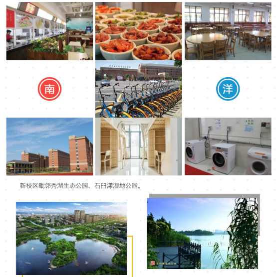 5.学习环境优美,生活配套优越 学生公寓小高层配电梯、带独立卫生间、空调、空气源热水器等,每层楼都配备有全自动洗衣机、洗鞋机、烘干机,校区内Wifi全覆盖。
