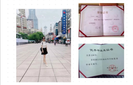 我院2012届计算机应用技术专业毕业生王芳兰,来自甘肃省天水市武山县。在校期间分别获得了如下奖项:2009年-2011年均获得了一级贫困助学金;荣获2010-2011年度二等奖学金;荣获2010-2011学院“三好学生”学生称号。荣获2010年度“杨槱奖学金”;2011年度“杨槱奖学金”;2012年荣获浙江省普通高校优秀毕业生称号。