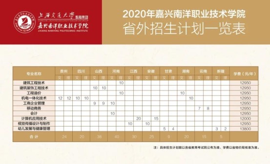 权威发布|2020年嘉兴南洋职业技术省外招生计划