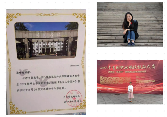 我院2017届商务英语专业学生汤晴愉,通过专升本考入浙江财经大学英语专业就读本科,2019年被外交学院录取,攻读国际关系专业硕士学位研究生。